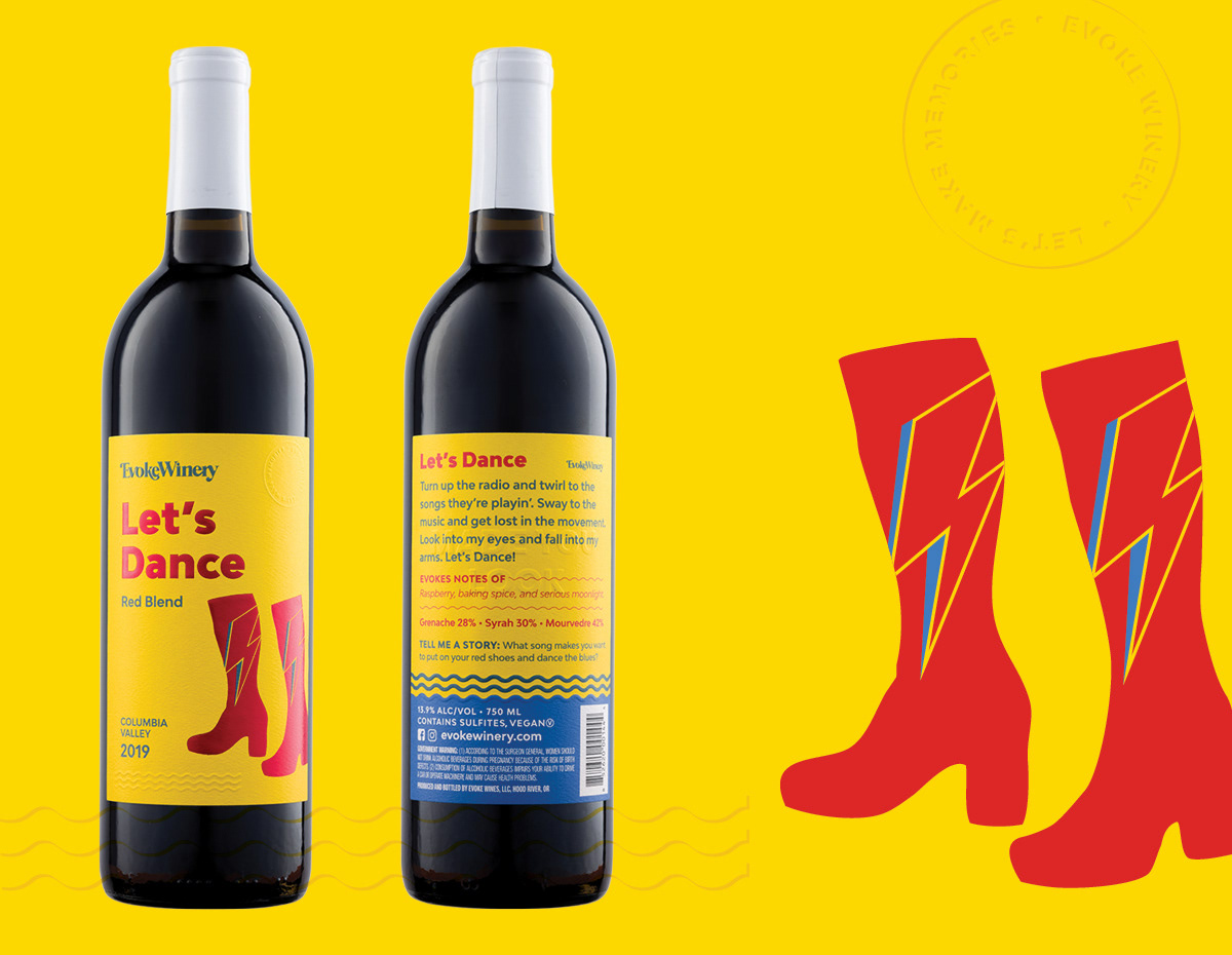 Design and illustration for Evoke Winery bottles